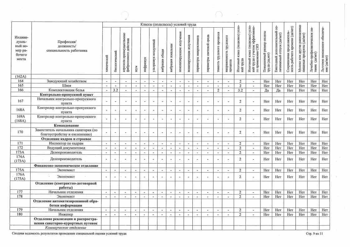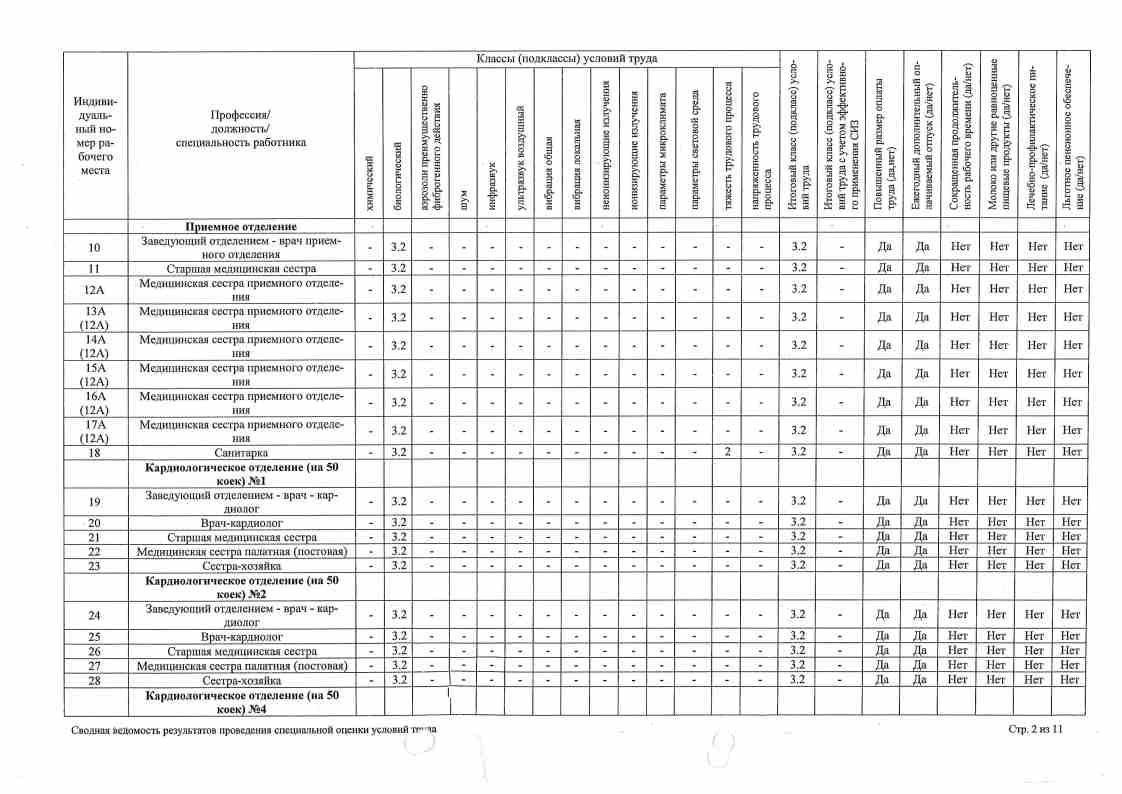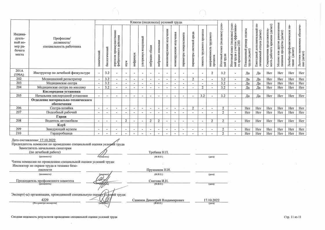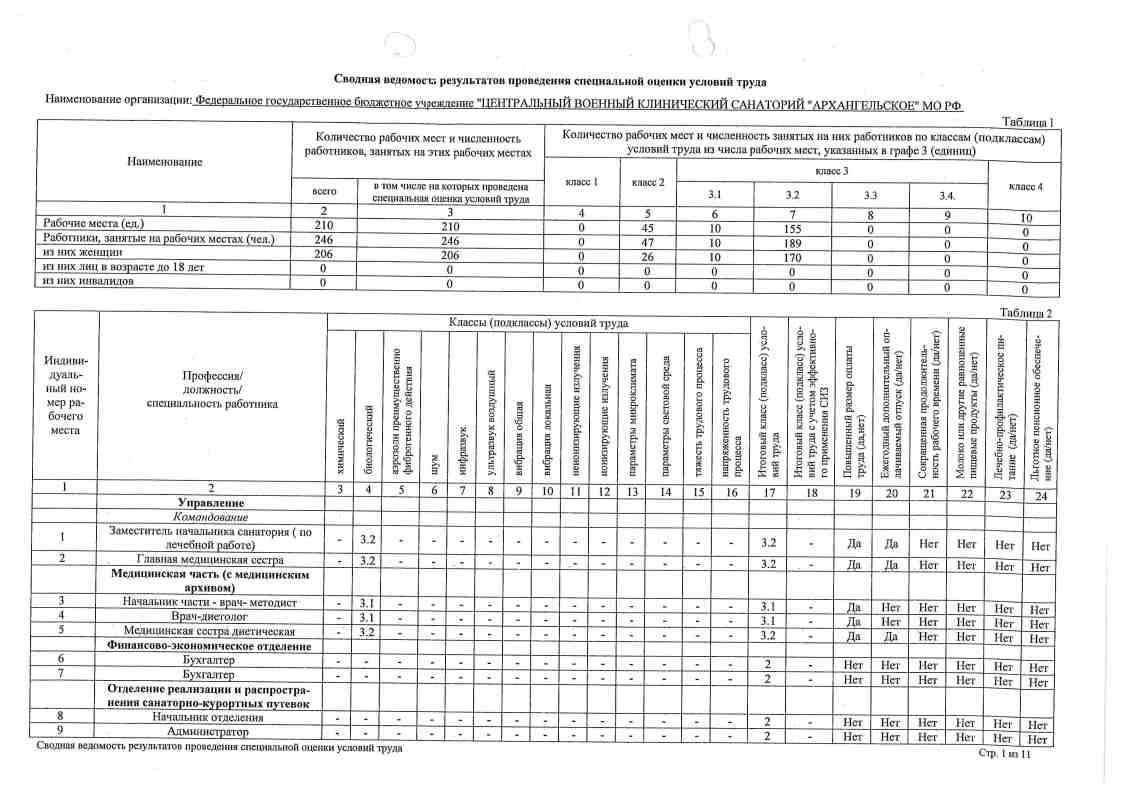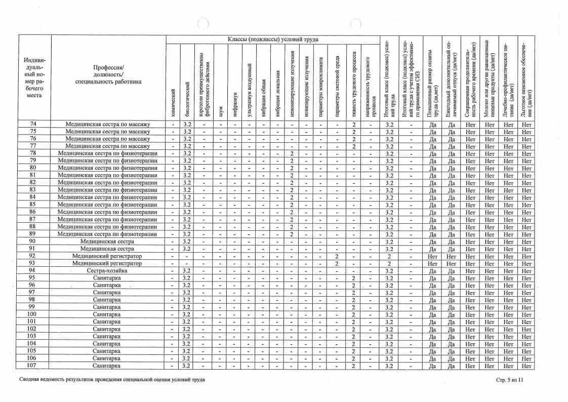 Сводная ведомость результатов проведения оценки труда