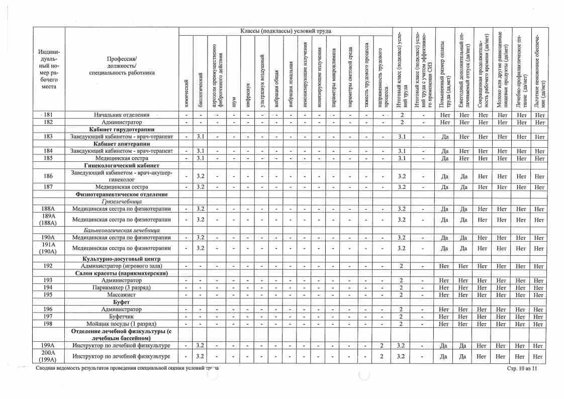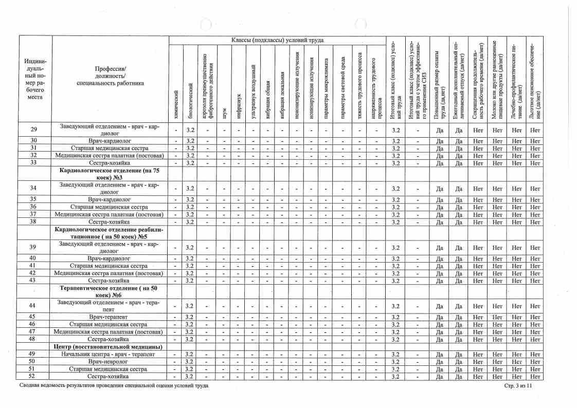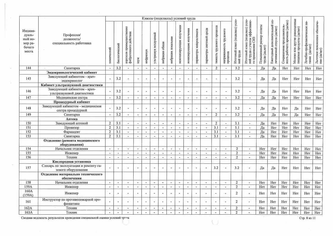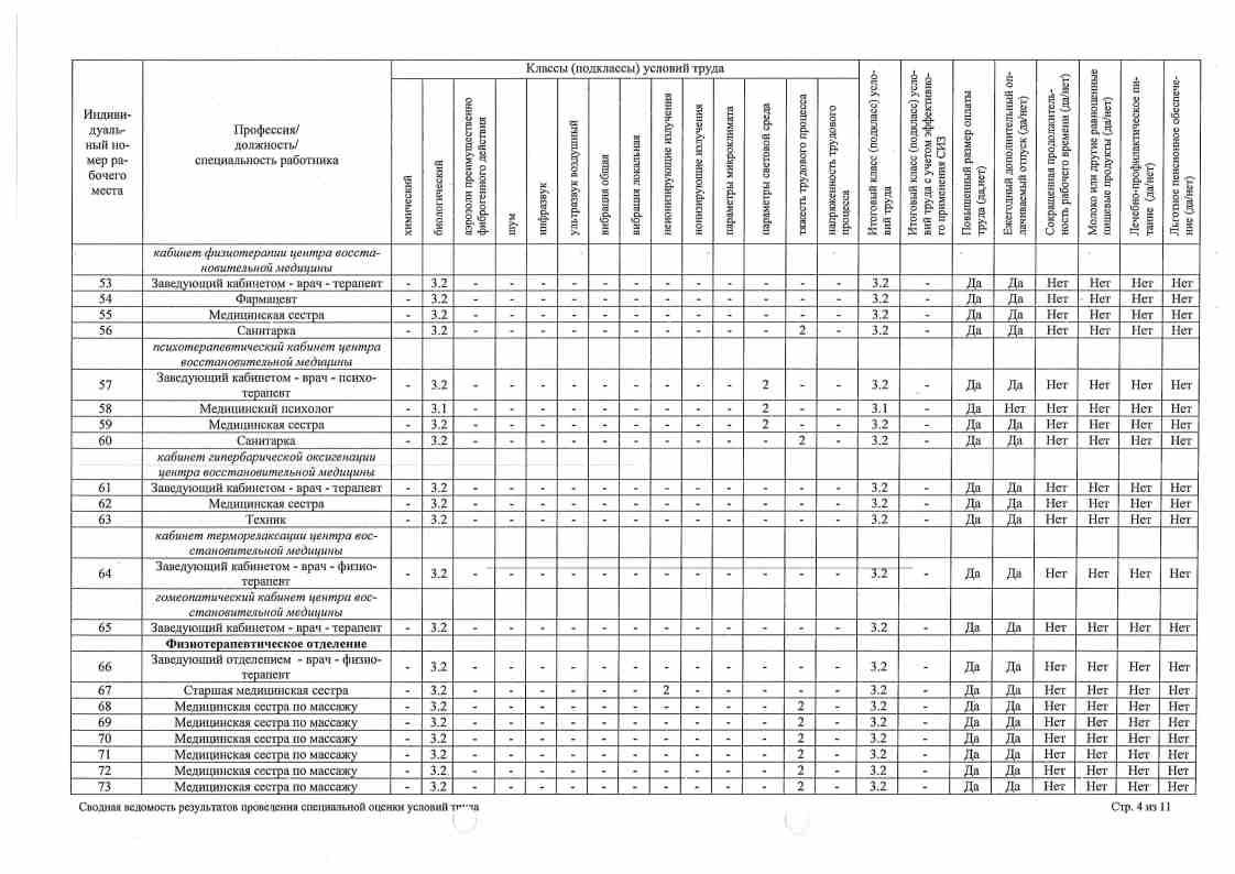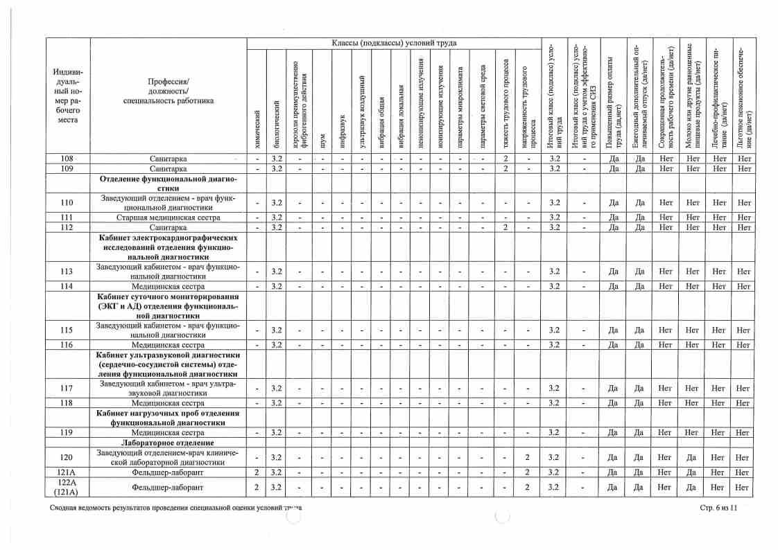 Сводная ведомость результатов проведения оценки труда