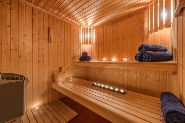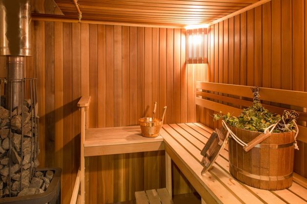 Са́уна - финская баня с горячим сухим воздухом. Представляет собой небольшое специальное помещение или постройку для испытания сухих и влажных ощущений. Изначально сауна представляла строение, в котором было одно нагреваемое до жара помещение. Огонь в очаге разогревал находящиеся выше камни, запасающие тепло. В парной потели, сидя на полке, и лили воду на каменку. После потения и полоскания мылись.